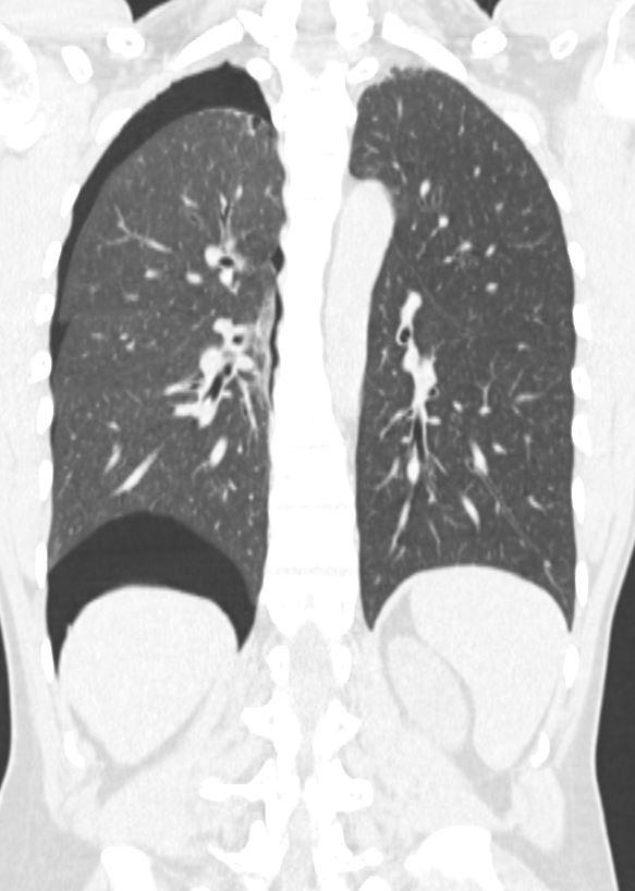 Answer: Secondary spontaneous pneumothorax secondary to blebs