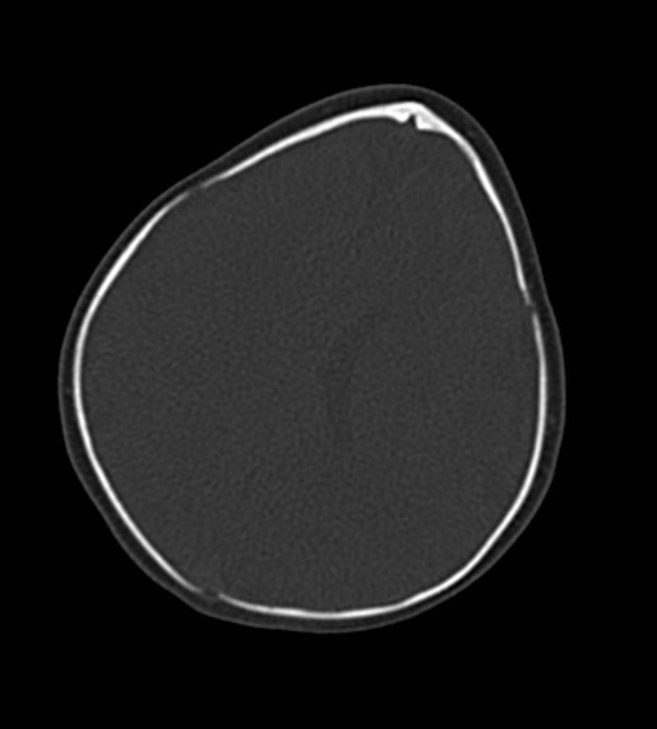 CT images of the brain revealed the triangular appearance of the frontal skull.
